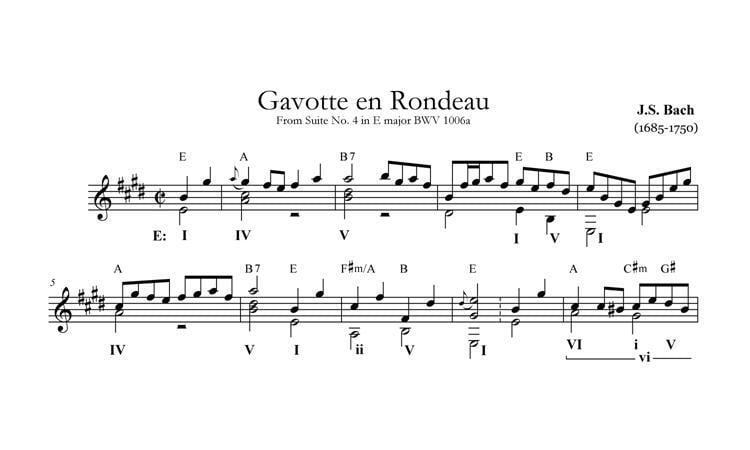 An analysis of the complete Gavotte en Rondeau from Lute Suite No. 4 in E major.