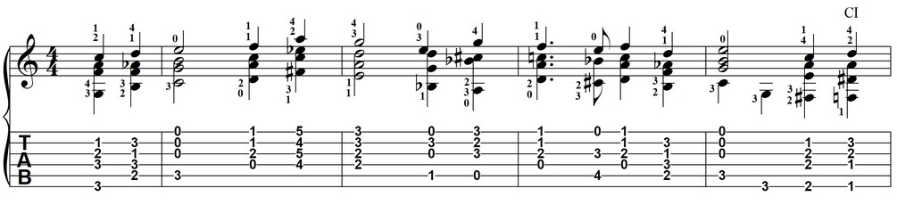A reharmonization of this well known tune. High intermediate level of difficulty. Standard notation with fingering, and tab included.